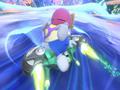 - Boost Charge: By pressing the B Button, your machine will hit the ground, and you’ll start a Boost Charge and brake. Releasing the button activates a Boost Dash. As Mr. Sakurai explained, this is more than just a speed boost – by tilting the left stick and holding the Boost Charge button through sharp corners, you can perform drift maneuvers, which help you gain even more of a speed advantage.