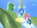 - Specials: It takes more than speed and deft maneuvering to get ahead of the competition, however. The Y Button is your “Special button,” and it activates your character’s unique Special move. Attack your rival riders and enemies to fill up your Special Gauge and, once full, unleash your Special! While most characters have one distinct Special, Kirby has four different Special moves – one for each color Kirby you can play as. Combine certain Specials with attack techniques like Quick Spin, which is activated by wiggling the control stick, and you’ll be on your way to victory!