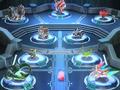 - Stadiums: Take your powered-up machine to a Stadium and compete to be crowned the winner. Each Stadium includes a different challenge that players will strategically select based on the power-ups you or your opponents have gathered. Some Stadiums will even be recommended for you based on your machine’s stats, in case you have any trouble deciding which one to take on. In Kirby Air Riders, you can also battle friends via local wireless1 with up to 8 players, or online2 with up to 16 players. Use GameChat3 to connect with your friends via video or voice chat to enhance the fun!