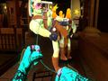 Graphically, TaVRn's Takedown looks gorgeous, and that falls squarely on the art style. The 3D cartoon style the series has adopted over time still fits well, and it has been accompanied by slightly exaggerated animations that reinforce the goofy setup, especially when someone gets hit. The texture work is good, even though there are a few areas where you can see low-resolution textures. The special effects aren't extraordinary, but they get the job done, and there are no major clipping errors.