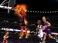 The action can best be described as frantic, though not so much that it dissolves the concept of strategy entirely. Think old-school NBA Jam, except not so stilted, mixed with NBA Street, except far less involved. Giving a nod to NBA Jam T.E., 2004 features “hot spots.” But unlike past games in the series, hot spots do not randomly appear on court. Instead you must first build your hot spot meter by performing vicious dunks and daring jukes and then hit the R3 button to summon a hot spot. By standing on a hot spot and shooting, your player will execute an incredibly stylish and insane-looking dunk, each consecutive hot spot you hit will increase in points. This adds quite a bit to the strategy of the game since large point differentials can quickly be made up.