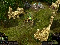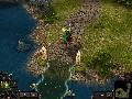 The graphics are obviously influenced by WarCraft 3, with exaggerated, cartooney buildings, but are nicely done and very attractive. One thing that did look odd was the boats on the water; I never got the feeling the boats were in the water, they looked more like they were slightly above it. The graphics are also hard locked at 1024x768, which is a tough sell when today’s standards allow for higher resolutions. The textures and models are well done, and I found the landscapes in the final campaign especially well done. The models for the heroes look fantastic, although the female hero’s outfits borrow heavily from the Chicks in Chainmail theme. The sound effects are standard fare for RPG games; they sound great but aren’t going to make you want to crank the volume up.