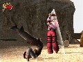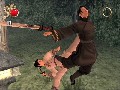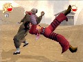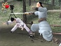 The game is a straight-out beater in which you try to bash the enemy into tiny little pieces. What makes this game stand out more from the other games is the use of martial arts moves. Depending on the button combination you hit, there will be a different sequence, some that look incredible while others are just not worth the time and effort. You learn special moves over time, and each weapon has its own set of moves. Unlike your regular moves, special moves can only be performed when you have a hold of the enemy, and you must execute the buttons immediately, or they will break your hold. Unless you have turbo-fast fingers, I would suggest that you mainly rely on the two forms of regular attacks: equipped and unarmed. The regular attacks are also available in either weak or strong mode, and like any games of this genre, you will need to gain experience to improve your attack, defense, weapon level and unarmed level. There is one thing I have not mentioned yet and that would be the ability to block, which is the most innovative I’ve seen thus far. If you have played any Street Fighter-esque game, you know how the usual blocking is, but for this game, it can be a truly artistic spectacle, if you can time it correctly. Characters can not only block with a weapon, but they can also perform evasive maneuvers that resemble an elegant and fluid choreographed dance. Definitely a must-see for you martial arts fans out there.