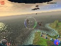 One of the downfalls of Battle Engine Aquila is the fact that it has console graphics from being ported to PC. The textures are blurry and bland as far as ground textures go. One cool thing is being able to step into and knock over trees with the Battle Engine Aquila, but, the trees themselves look like cardboard cutouts. Game models such as the infantry units are pretty uninspiring with few frames of animation and plain skins. I understand that anything too detailed would mean less units on screen, but perhaps better skinning on the models would have given them more ‘oomph’. Besides the infantry, the rest of the war machines look really good. The tanks roll about the terrain and the airborne units zoom across a decent-looking sky, all the while firing hundreds of rounds. The game’s water isn’t spectacular, but it is bumpy and when the sun hits it from a certain angle you’ll be treated with a pretty nice-looking effect.