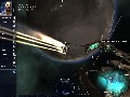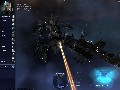 Eve is played from a 3rd person perspective. You see the world through the eyes of a camera drone hovering outside your ship. This gives you a much better feel for the world over the traditional first person viewpoint in classic space simulators. A 3rd person camera lets you watch as your turrets aim and fire at an enemy target. You'll see missiles flying overhead and your ship in flames if you are running into trouble. This also allows for more sophisticated options, such as controlling large battleships, attacking multiple targets, remotely controlling combat drones, etc.