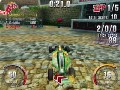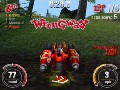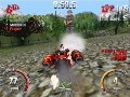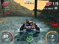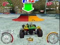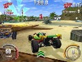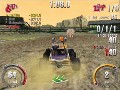 In the final retail version of SmashCars there will be a total of 7 play modes, 13 cars, and 13 race tracks. In the preview I was only allowed to test two play modes. The first mode is single race were it is just an all out race to see whose the fastest. With winning comes prize money and with that money you can upgrade your cars, you also are working towards unlocking new tracks. A cool feature to SmashCars is that the tracks are not limited to just a predefined path, Each board hides a host of shortcuts that you can discover to cut down on your time and almost insure victory. There are also obstacles scattered throughout each map, some are simple pools of water while others are humans shooting guns or driving go carts trying to knock you over. The second play mode I tried was the tricky mode. This play mode is pretty much self explanatory, you have to pull off crazy tricks to rack up to points as well as get to check points to extend your time.