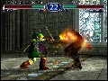 Link's a weird character. He's got the Zelda II upslash as a juggle, the downslash as a pursuit, and his roundhouse spin from Super Smash Brothers Melee. He's even packing his boomerang and bow, and his bombs work a lot like that one trick Taki's got where she slams the ground and you hit the ceiling. For all that, though, he's not horribly overpowered. If you pick Link and intend to shoot your way to victory, please note that while you are shooting arrows at someone, they will probably eight-way-run around you and, if you're lucky, settle for simply landing a side throw. Picking Link is a bone thrown to the Zelda fans, not a license to dominate.