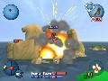 The game-play remains unchanged, featuring turn-based fighting and relying on the player to judge the trajectory and strength of their shots in order to inflict maximum damage on opponents. All the favorite weapons such as bazooka, grenade, dynamite, air strike and sheep are present including some new additional ones. Defensive tactics can also be employed as you choose to dig in with buildings, trenches, sandbags or fortifications, whilst buildings on the landscapes can also provide shelter against attacks.