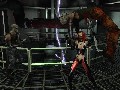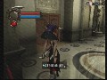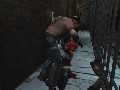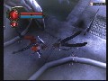 Rayne herself has undergone a makeover. She looks a lot better, even on the PS2 version (and sounds just as good; Laura Bailey is still voicing Rayne), and the animation’s gotten more complex. Instead of simply dropping an exsanguinated victim, she flips off his chest and knocks him away. Rayne’s lost her weird-looking dive kick, but replaced it with a variety of combinations. Instead of flailing madly at an enemy, you can now tear into them with three- to six-hit combos with predetermined endings; one may end in a vicious circle slash, while another involves mule-kicking an armed opponent so hard that he drops his weapon. The main draw of the first game returns here, in that hitting an enemy with a blade still carries a random chance of instantly dismembering them.