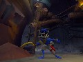 There are some typical problems in Sly 2 that are common in 3D platformers, such as depth perception issues and the occasional bad camera angle, but there’s nothing too serious. Control is responsive, which is an essential element of a good platformer. The circle button acts as a multi-purpose action button. Objects or areas that can be manipulated are identified with an aura. Glowing ledges and ropes indicate that you can navigate them by pressing the action button. It’s simple, but it works very well.