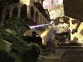 Looks! The graphics are quite special in Halo 2. Actual gameplay graphics are crisp, responsive, and vivid. Our test of Halo 2 was on a wide-screen HDTV and it was nearly entrancing. Tack on Dolby 5.1, and we were making bad guys fall all around us as we heard the flood creeping up in the rear channels. The framerate through the entire game was more than adequate, and it seemed that there was nary a mapping glitch to be found. In actual gameplay, Halo 2 may have the best graphics of any console FPS on the market, and it is surely one of the best looking games for this season. The cinematic cut scenes between the 15 chapters are special too, but not in a good way. What we saw were scenes composed using the game engine, but they were of worse quality than real-time action. In fact, the scenes were far worse. Comparing to other video games where the norm is to have higher quality cinematic breaks between chapters, it’s almost as if no one thought of getting the chapter transitions off the storyboards until the week before Halo 2 went gold. With all the talk about the great storyline of this sequel, it was quite disappointing to find that the primary elements responsible for explaining plot twists and transitions were of such poor quality that it was almost better to look away and listen to the narrative instead. Thankfully, between the time that we had our hands on the game and the actual release code that is hitting stores as you read this the quality of these vital cinematics has been increased to the point that they really show off the power of the new engine.