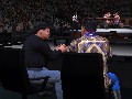 Although the graphics make it seem closer to the show, one aspect that strays from it is the fact that the theme songs for certain players are still not correct. The imitations aren't bad, but when you see a character entering the arena, you want to hear their exact theme song and voice. Adding in voiceovers was a move I had anticipated, but for some reason, the voices don't seem to be the ones with which I'm acquainted. This is especially noticeable during the cut scenes, where you will also notice that the characters' mouth movements are completely out of synch. The only characters for whom this was not a problem were the commentators, Michael and Tazz or JR and King. What makes up for these horrid voiceovers is the fact they included a really nice soundtrack; while it might consist of older songs, it really gets the job done.