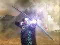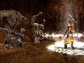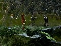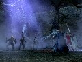 It is, at least, a scenic trip. From the hills and mountains of the west to the plains of Rohan and the walls of Helm's Deep, the area designers are obviously working straight from CGI from the film to bring you the environments of... uh, New Zealand, but we'll pretend it's Middle Earth. I'd venture to say this game has better fog than Silent Hill. The character models are detailed and items equipped show up right on their body, which is always a good, atmosphere-building touch. There are other things I could go on about, like the detailed and realistic fire effects and the near-perfect look of water sloshing in the rivers, but you're probably getting the idea. This is a pretty game.