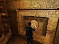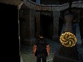 With nothing in my inventory that seemed useful to get me out of this situation, I had to resort to the manual for some hope of a written tutorial or help. The manual is very thin, but it does include a walkthrough of the first few actions in the game. The walkthrough in the manual says, "walk around the room and look at the murals on the walls.... It appears that there is nothing to do in this room, but wait! ... In the note book, there was a reference to the dragon mural." If you are the kind of person who likes reading the 20+ pages in the journal, you could possibly figure that out. I had skimmed through the mural and did recall seeing the words "dragon" and "mural" and had even gone as far as trying to push on said mural with my action key. The problem was that it didn't look much like a dragon, more like a brachiosaurus. I tried pushing again, and nothing happened. At this frustrating point, I checked the manual again and noticed the walkthrough said to position yourself in front of the 'head' of the dragon. So I walk up again and tried positioning myself directly in front of the head of the dragon. Finally, when I pressed the action key, an in-game video was launched, showing Raven opening up a secret door.