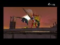 I’ve died more times than I care to admit on the final couple of levels, not because I suck, because I got caught in an aerial crossfire (something which Hibana has absolutely no defense against, and besides, having to effectively “fly” by way of murdering airborne enemies is hard enough when they aren’t shooting at you), by messing up the button sequence you need to stay in the air (Circle, Circle, hold R1, X, Triangle, Square, X, Triangle, Square, etc.; repeat the last three up to fifteen times). Less often, Hibana would fall to her death because I was winding up an aerial Tate combo, and she wasn’t able to get back to solid ground in time, either because I’d been taken too far away by the inscrutable vagaries of target-lock, or, after all the rapid dashing and the Tate movie, I had no bloody idea where I was in relation to the ground.