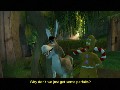 I have to say the surroundings look extraordinary. It would seem like the maps and background are taken directly from backdrops we saw in the Shrek movie. To make these backgrounds more realistic you can interact with almost every aspect on the screen; it's very cleverly thought out. I just love beating on the lamp posts or even the innocent bystanders, though when you beat on them too much you lose stars, something I have tried hard not to do because I can only assume the results will be bad. Adding to the background, the characters look shockingly similar to the movie design. Though there is no awesome CG, the in game graphics are more then enough. You also have full control over your camera, and for once the camera doesn’t get stuck in those odd positions near a wall. Even though they fixed this major problem, there is still a part I wasn’t completely pleased with and that would be the intro scenes for each chapter: The character doodles are rather odd looking, but at the same time it’s something you expect to see in a child’s picture book. They are presented oddly similar to how Disney presented their old movies like Cinderella.