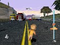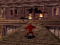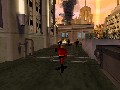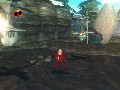 We also got to check out a level we apparently shouldn’t’ve seen yet, starring the Incredibles’ son Dash. In a sequence that was faintly reminiscent of Sonic Adventure meets Road Rash, Dash had to use his superspeed to catch the school bus. At speeds of well above a hundred miles an hour, you have to race through the suburban streets, jumping over cars, sliding under trucks, avoiding open manholes, and dodging pedestrians.