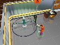 Elixir Studios has done an exceptional job of capturing the exact mental image of what people would expect such a game to be. The violence is cartoonish, which fits well as it is usually dealt out among men suited up in brightly colored jumpsuits. The control room objects are a hoot in themselves, with their "cutting edge" technology of tape reels, large blinking lights and buttons, and boxy appearances. The game is filled with subtle special effects such as a nice reflection effect on the floors and an excellent lighting engine for muzzle flashes or when your base is underpowered and the lights go out. Even the models of your minions are fairly detailed when viewed up close, indeed the theme of paying attention to the small things is one that Elixir takes close to heart. Minions will trade their berets and helmets for headphones when manning a control room terminal, holster their weapons on their hips or backs when not in use, and instead of magically appearing and disappearing you can actually watch boats and helicopters arrive on your island, watch your minions enter them in a realistic fashion, then leave the island. Basically Evil Genius' visuals are exactly what anyone would expect from a game based around spoofing the spy genre films of the 1960's.