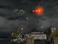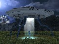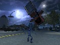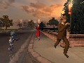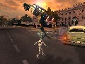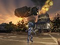 Those entire cities are rendered in a very flexible engine, which lets you switch from running around on the ground to flying around in your UFO without a hitch. Both humans and your alien are expressive and well-animated, from your Grey’s evil little chuckles to the panicked screams of pedestrians as they break into a run. When you blow up a building, it shudders and collapses into a cloud of smoke and pulverized concrete; when you throw a woman a couple of thousand yards with the power of your mind, she’ll scream and spin around in mid-air right up until she hits a vanishing point.