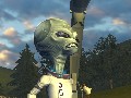 In DAH, you’re on the other side of the traditional 1950s science-fiction equation. Instead of the square-jawed scientist hero out to save humanity from the alien menace, you’re a Grey, come to wreak havoc on a largely unsuspecting human race. From city streets to rural towns, you can walk around on foot or fly in your spacecraft, in order to gather information, accomplish various goals, or kick human ass.