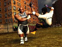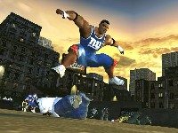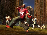 Also new to NFL Street 2 is Own the City mode. This mode is a lot like NFL Challenge mode, but instead of training a whole team, you are responsible for training one player: yourself. You meet up with Xzibit (the guy from the cover), and he takes you through a brief tutorial of the game. After completing the tutorial, you and a bunch of other punks go around the country playing other randomly-generated characters and teams. Beating these teams at pickup games and other random mini-games will get you through this mode in which you own the city.