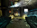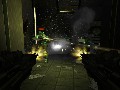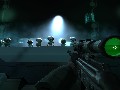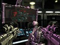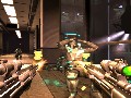 Your arsenal also includes a wide variety of firearms, each of which comes with a secondary fire. So far, we’ve seen a pistol, double-barreled tactical shotgun, submachinegun, sniper rifle, and an alien laser gun called the BBG. The last’s the most fun; its primary beam fires ricocheting globes of plasma that stick to a victim and explode, and by pressing R2, you can track where the plasma will go with the help of a targeting laser. Blowing someone’s head off is all well and good, but when there’s something glowing dangerously on their chest and they’ve got about half a second of cold realization before the explosion? Now that’s entertainment.