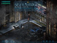 The game world is divided up into sectors. There are towns containing NPCs that give you missions and sell you useful things, such as weapons, medkits, and cyberware, and then there are areas containing NPCs of the not-so-friendly variety that try to sell you things like beatings, stab wounds, and death. The cunning gamer will use what he gets from the first group of NPCs to give the second group a counter-offer in the form of shootings and maimings. You start out in one of the more urban towns, and walk around talking to the various NPCs. One might try to sell you cyberware (body part upgrades with attribute/skill bonuses), while another gives you a mission or a monetary loan. Interaction with NPCs takes place through a dialogue tree, although some dialogue paths lead to nothing and force you to retry the conversation from the beginning and say the right things to continue, a minor annoyance.