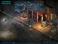 The background scenery is very well done; from the moment you start playing, everything looks and feels very cyberpunk and very post-apocalypic and futuristic. Unfortunately the character models, especially the animations, were quite bad, bordering on horrible. They are not of the same quality level as everything else in the game, almost to the point that they don't even look like they belong. It's like someone squirting ketchup all over a $30 prime steak. If you're going to use sprites, try and have enough different frames during the animations that it doesn't look jerky. It's a bit ridiculous when you see a guy fire a shotgun, then you see it at a 45-degree angle, then 90-degrees, then back to 45-degrees, then back to level. An RPG is about immersion, and when things look odd it makes it hard to forget you are just playing a simple game. Hopefully something will be done in the final release to address these issues.