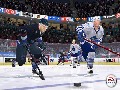 Some might worry that EA has compromised realism by making it too easy to score in NHL 06, and to be honest, it is probably easier than in prior editions. However, escalating the difficulty level will ensure that the computer brings its full defensive arsenal to bear. Expect many a bone-crunching hits and acrobatic goalie saves aplenty if you decide to play this game on the "Difficult" game setting. Despite this game's decisive emphasis on offense, at the end of the day, hockey is all about hitting people. Checks look and sound great, and player movements are fluid, realistic, and, when appropriate, downright painful to behold. Hold down the Y button as you skate full speed into another skater, and you will administer a hit that would bring a smile to the face of any would-be NHL bruiser.