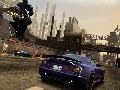 The sound effects play a large role in making this game what it is. The wind effects are second-to-none in the racing genre (even better than GT4), with traffic, pillars, lampposts and other objects whizzing by in Dolby surround sound. The wrecks are extra crunchy, and the explosions are powerful. Criterion knew exactly what parts needed noise, and what parts needed silence. For example, when flying off the edge of a cliff, everything goes silent, except for the rushing wind. You only hear the "BOOM" when you finally make impact. The sound effects used when triggering a Crashbreaker are also great. When you push the button, it sounds like a vinyl record coming to a quick halt, then a split second of silence, and then "POW!" Very satisfying indeed. EA Trax are back, and still seemed mismatched with the destructive, vengeful theme of Revenge. Whether you like the music or not, you should do yourself a favor and try the game with no music, just to appreciate the effort put into the sound effects.