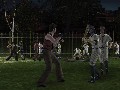 The automatic targeting system that the game uses for hand-to-hand combat can also be a pain, especially when you're trying to run away from a fight. Your characters really seem to want to mess somebody's world up, so in the event that you're outnumbered thirty or so to one and you're supposed to be running away, they'll often resist you. They'll start circle-strafing rather than running, and while you can turn that off with a tap of the thumbstick, that's enough time for you to get dogpiled by angry mimes. (Yes, I said angry mimes. Don't ask.)
