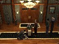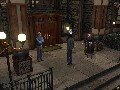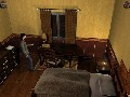 Graphically, the pre-rendered backgrounds are extremely detailed and well crafted. Cut scenes are quite attractive and artistically rendered, but that doesn't mean that oddities don't crop up now and again. For example, the characters' facial features and expressions are done well enough that suspicion, regret, and doubt are conveyed without a hitch, but the presentation of long hair seems to pose a problem. Miss Claythorne appears to be bald and wearing a long red wig which covers too much of her forehead and not quite enough of the base of her scalp. She has been deemed the attractive femme fatale of the bunch, so it's vastly amusing to watch two of the male characters argue over a woman who's sporting a hairdo that's a cross between Donald Trump and a mullet.