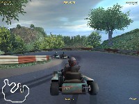 The point is, Kart Challenge 2005 is a stunningly beautiful example of what racing games are and can be. Remember the last few Gran Turismo games where you had to glance away from the action on the screen to catch your spot in the pack, your distance from the leader, and how many laps you had to complete? In KC2K5 (as it will be called from here on in) you can actually see, and clearly read the leader board as you speed beneath it.