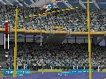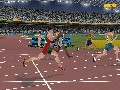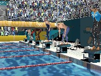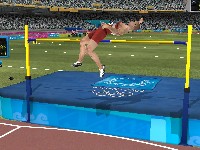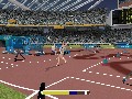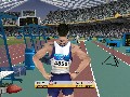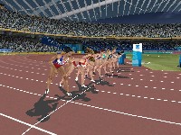 There's also an amusing glitch that kicks in occasionally, and this could just be my video card (a GeForce 3, for the record). Every now and then, a cluster of polygons will stretch out across the course absurdly. Sometimes it's one of the ground textures, and that looks silly but all right. However, sometimes you'll be going about business as usual and suddenly notice that one of the bystanders -- or perhaps even your own athlete -- suddenly has no head. Nothing throws you off your stride like suddenly spotting the headless guy sitting around on the sidelines, let me tell you. (Particularly if you're doing the discus throw. "Oops, was that me? Sorry.")