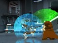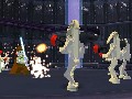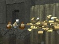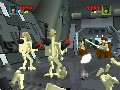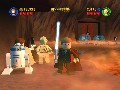 It's the graphics that really underlie the game's nearly Dadaist sense of gleeful surrealism. The world of Lego Star Wars is one where every person, every environment, every vehicle is made entirely out of CG Legos. Defeated enemies or bits of the environment you destroy will explode into an authentic shower of component bricks. You can use this essential Lego-ness of the environment to your advantage, particularly when you play as Qui-Gon or Obi-Wan: they can use the Force to reassemble certain piles of environmental Legos into more useful shapes, like staircases, ledges, or bridges. The game's soundtrack appears to have been directly sampled from the different movie soundtracks, so you'll be hearing a booming John Williams score while you use your Jedi powers to reassemble Lego space fighters. This only serves to underscore the fundamental strangeness of the game.