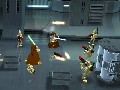 The controls are fairly simple. The camera angle is fixed, so you'll use the D-Pad or left analog stick to move. The cross button let your character jump, square lets your character attack if they carry a weapon, and circle will let characters use special abilities. For Jedi it's the Force power of telekinesis, Droids can open doors with special locks, gun-toting characters can grapple up walls, Young Anakin slides through vents too small for other characters, and Jar Jar… does nothing, appropriately enough. He can do a wicked super-jump if you press the cross button twice, though. During driving sequences, the controls become even simpler: you can move your ship left and right with the D-Pad or left analog stick, and speed up by holding down the cross button.