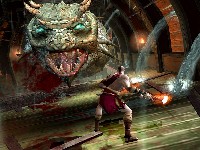 To be fair, SCEA did give a break from the same old fatalities every once in a while, with special fatalities for the bigger adversaries, by either mashing the circle button to fight a blade down the throat of a giant minotaur or by pushing face buttons as they appear on screen to dodge a cyclops’ attacks and jabbing your swords into his skull. These fatalities, coupled with the boss battles, may very well be the reason I played the game all of the way through. Five minutes into the game, you’re already launched into your first boss battle. While the first part of boss battles is your basic hack, slash, and block, the latter half are played by pushing context-sensitive buttons in order to create quite the cinematic battle sequence. I read an interview in which one of the developers revealed that the game's engine has been in the works for a little over five years, and I have to say that it shows. The game flows fluidly from one piece to the next, with only cut scenes breaking up the action. Throughout the duration of the game, I can only recall a total of two load points