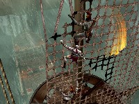 Actual gameplay takes place three weeks in the past, on a half-sunken ghost ship. The game starts off strong, hurling hordes of baddies into your path, only to be slaughtered by your blades. The controls are very easy to master, giving you the ability to brutalize and murder your opponents in the sickest fashion. This game is really a button-masher's dream due to the fact that dealing out 40- and 50-hit combos right from the get-go is no problem. These combos can be built upon with an experience system, along with your other weapons and magical abilities.