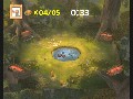 Each stage of the map has a total of 15 honey pots hidden in three objects, and while finding them is easy, catching them is actually the most difficult part of the game. Pooh is kind of sluggish, and the honey pots can bounce out of their hiding places like rubber balls. You also have no camera control so you have to hope that the honey pots will go in the direction you've planned. Add these issues to a slow, waddling bear, and you may not have enough time to pick up all of the honey. You need the honey in order to lure away the bees, which are usually blocking a key item and refuse to leave until provided with a certain amount of honey pots.