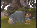 So Winnie the Pooh's Rumbly Tumbly Adventure is quite easy, and anyone with a basic grasp of English can pick this up and play it. Pooh can't do all of this adventuring alone, and he will need the help and advice of Owl, Rabbit, Kanga, Eeyore, Roo,Gopher, Piglet, and Tigger. Tiger and Piglet seem to be used to open up paths to move on, Eeyore is used as a horse to catch butterflies, frogs, etc., and Gopher, Rabbit, and Owl give helpful advice about the section's key object. When you manage to find the object, you will get to enjoy a nice little cut scene, with voice actors speaking their parts.