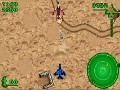 Once engaged in combat, the game begins to pick up a bit. It's quite fun to strafe enemy missile sites and dogfight with the ASF fighters. When the plane takes damage, it's represented by a percentage and a tiny outline of the plane in the corner of the screen. Once 100% damage is reached, the plane is destroyed and the game is over. In the lower left-hand corner is a graphical representation of the secondary weapon along with a number representing how many shots are left of that particular ordnance. Of course, when the plane gets too damaged or the secondary weapon is completely discharged, victory is not lost. At any time – and this means whenever and however many times the player wants – the select button can be pressed and a tanker appears which will both repair plane damage and replenish the weapon bays. This really makes the game beyond easy, and there's no incentive to avoid using this technique.