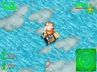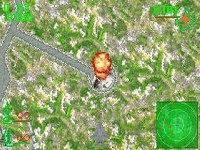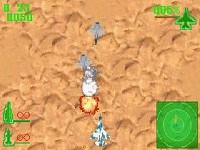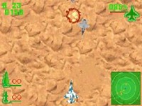 While the graphical scaling and rotating effects serve this title well and look nice, the overall graphical feel of this game is fairly bland. Each plane has a distinctive look, but the fact that all the enemy planes are red and the friendly planes are blue obscures the details. Ground targets often don't look anything like the missile launchers or other targets they are supposed to represent, and the terrain below is extremely monotonous, featuring green trees, white snow, brown mud, and blue sea in an endlessly repeating, homogenized landscape. Thankfully, the player isn't forced to remember where the targets are or how to find them; a radar screen is provided, which highlights ground targets, air targets, and also features little arrows which represent the general direction of the primary and secondary objectives. The best looking parts of the game are the screens which are displayed upon successful completion of a mission or when the player meets an untimely demise. They serve as replacements for the excellent cut scenes found in the console versions of the series; unfortunately they are static and boring.