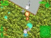 The missions consist of the "seek and destroy" variety, with the player told to follow waypoints and destroy targets along the way. The game is played from a top-down perspective, which is a definite departure from the "in-cockpit" view that is normally associated with Ace Combat. That's not to say that it isn't a good choice for the GBA; it actually works quite well. The game is given a "free-roaming" feel by allowing the player to turn left and right to circle back around to targets or flee from enemies, and the terrain below rotates with the player's movement, which is a pretty neat effect. Another unique aspect to Ace Combat Advance which sets it apart from a typical top-down shooter is the fact that the plane can descend to ground level in order to avoid missiles and enemy fighters. When the player descends, the ground and other objects scale appropriately, growing larger or smaller relative to the plane's altitude.
