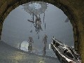 Darkwatch has many of the other stock FPS weapons, including a rocket launcher, sniper rifle, and shotgun on steroids, but don't count the Redeemer, your stock weapon, out of the game when you get access to others. With a 24-shot clip, the Redeemer packs quite a punch for a pistol, and has a good rate of fire. The weapons seem to be enough at this point to manage most of your foes, but if you end up in a close combat situation, don't despair, cowboy. Each of the Darkwatch weapons comes equipped with a very sharp and quite effective blade. Not only is this handy when using the crossbow gets a little to close for explosive comfort, but also when the Redeemer isn't quite enough to get the job done before the undead are standing on your toes. Swinging the blade end of your gun really shows off the strength Jericho's gained from Malkoth's bite, as the undead enemies usually get tossed a few good yards from a direct strike.