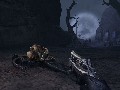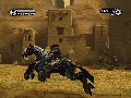 Fitting with the Wild West, Jericho has a trusty steed through the saga of Darkwatch to keep him on the trail of Lord Malkoth. The horse's name is Shadow, and he comes courtesy of the Darkwatch team. In reality, he is a demon who has taken the form of a horse to serve Jericho's needs, and his loyalty is more than good will, as he's kept on Earth through the use of Jericho's blood. One of the earliest episodes pits you against an airborne Malkoth while on the back of Shadow. In third person mode, you are able to aim at Malkoth in a 360° circle while Shadow carries you faster than any Earthly steed could. As Malkoth swoops back and forth overhead, Jericho can slide off to either side of Shadow to use the demon horse as a shield. Malkoth wouldn't stand a chance if you could fire in this position, but it takes both hands to hold on to the side of the horse. This scene demonstrates one of the many points where timing is much a part of the offensive tactics Cross will need to master throughout the game.