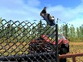 It’s not hard to see why FlatOut is coming to the states; it’s a great idea for a racing game. The concept is that you’re racing in what the European developers seem to imagine an American demolition derby is like, fighting it out for top honors and prize money. In the race, everything is subject to interacting with the game’s physics engine. If you slam into a wall of tires, they’ll bounce across the track; if you drive over a rock, you’ll be likely to flip your car; and if you slam into a tree, your driver will fly out of the car headfirst and bounce hilariously across the landscape.