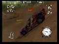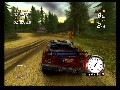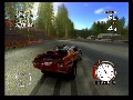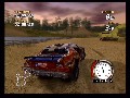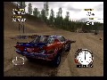 Unfortunately, the game is a complete and total failure when it comes to play control, so it'll need some serious work before hitting retail. In theory, the controls are fairly simple and typical: cross button to accelerate, circle to break, R1 for nitro boost, analog or D-Pad for directional controls. You can fiddle around with the camera angle you view your car from, too, but for practical purposes the default angle works best. However, as soon as you’re racing, you’ll find that applying anything but the slightest pressure to the PS2’s analog stick or D-Pad causes your car to jack-knife violently to the side. This makes the cars ultimately handle like shopping carts, and trying to make them take corners or evade obstacles is about as easy as maneuvering a high-speed shopping cart would be. It feels nothing like driving a car, and coupled with the aggressive AI and the way that terrain affects your handling, makes trying to win races deeply frustrating. It often feels like your car is doomed to slide drunkenly around the track and skid into obstacles on sharp turns, regardless of what you’re driving or how your car is tuned or even whether or not you’re trying to use the brakes.