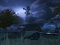 In a perfect world, that would be all you need to hear. I wouldn't have to mention the ability to hypnotize cows into dancing the Funky Chicken, the weird retro-'50s ambiance that makes posters for "The Friendly Atom: It's Working for YOU!" seem a natural fit to the world, the ability to cloak yourself as public officials and make speeches decrying communism, denying alien invasion and blaming mutant radioactive zombie cows for the whole thing, the incredible ease with which it is possible to use your Furon-given death technology to harvest tasty, DNA-rich brainmeats... This is a game that tries to pack in just about everything worth having in a video game. It's still in preview form, but it's come together pretty solidly by now and is playable up through the first several stages. Destroy All Humans!, I would dare to say, is shaping up to be the best game about wacky alien invasion that we've seen since Alien Hominid.