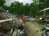The problems with the game? Shoddy graphics, loose control, stiff A.I., and did I mention shoddy graphics? The PS2 is not known to be a visual beast when it comes to the textures and, to an extent, the geometry, but much, much more could have been done to spruce this game up a bit. Take a look at the latest Splinter Cell on the same console. Yes, the environments had to be shrunken, and therefore gameplay had to suffer, but the game still plays similarly enough to its Xbox sibling. But in that case, those games were developed side-by-side to announce a similar experience. Not so with the platform exclusive Ghost Recon 2 projects. A better job could have been done; but the Xbox version was the priority. Couple this with a complete lack of offline multiplayer (my favorite feature from the first GR game), and you've got a release with little purpose other than to sell a few Xboxes to jealous onlookers.