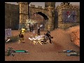 And to go with the shallow PS1-level gameplay are shallow PS1-level graphics, too. Most textures are either simple or just plain flat, and not in the cute cel-shaded way but the ugly lazy developer way. Brown blur – oh, that's wood! Light brown blur – oh, that's sand. (Or is that dirt?) The art direction/level design limits the locales to bar-room brawls and downtown scrappin', which grows very old even within the handful of hours it takes to complete the game. To make up for this are stylish, over-the-top animations, which aren't good enough to avoid horrific clipping issues, but they do serve to keep the fantastic style from the cut scenes at least somewhat present during actual gameplay.